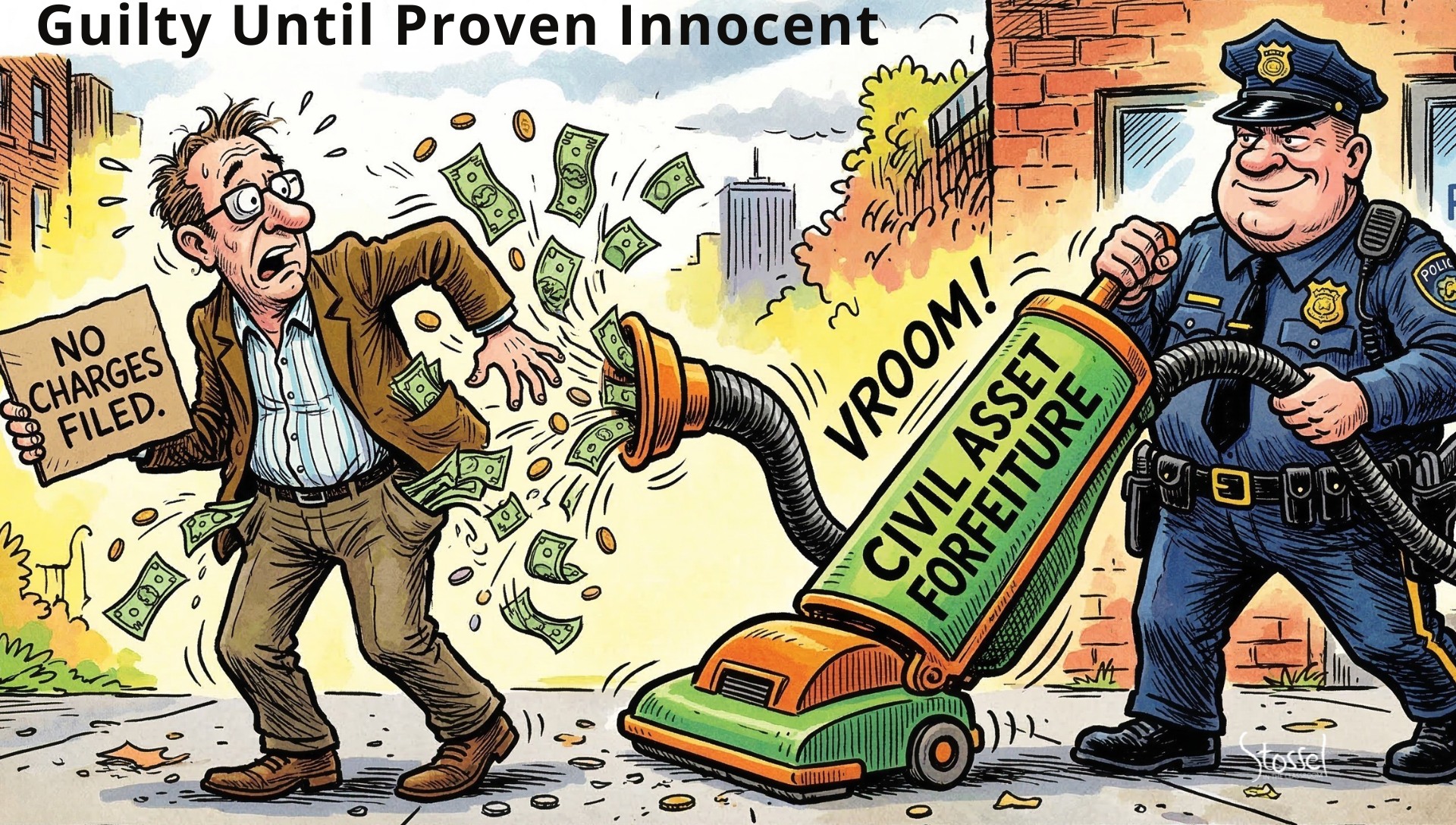SITC.org’s newest video, When Cops Become Robbers, tells the story of Mandrel Stuart, a Virginia restaurant owner whose cash was seized during a traffic stop. He was never charged with a crime but getting his money back took more than a year and cost him his business. The video traces how civil asset forfeiture works, who it affects, and why reform efforts keep stalling — a story that connects government power, due process, and the real-world consequences of misaligned incentives.